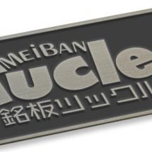 特にブランドイメージを大切にする工業デザイナーから人気を集めているのが、エッチング加工をしたままの梨地のようなテクスチャーが特徴の凹面を活かした「カラーレス銘板」です。